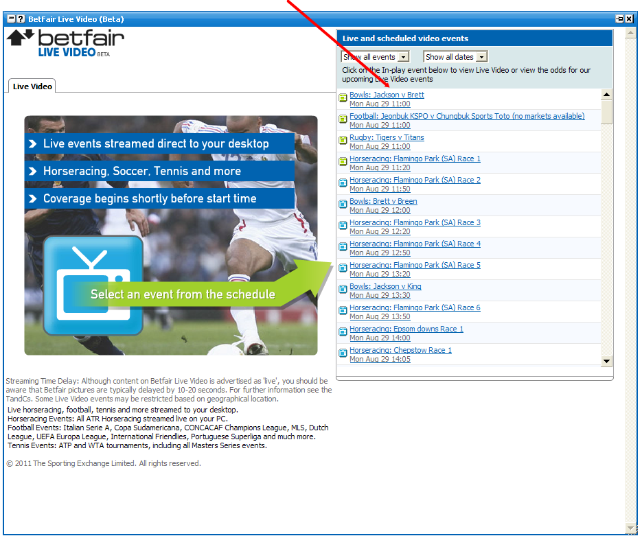 Nota, o vídeo da Betfair pode ser muito lento e pode parar o Toy enquanto tenta carregar os vídeos.Selecione um evento para ver na janela do lado esquerdo.