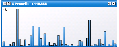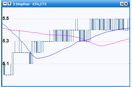 Gráficos de preço representam várias medidas de preço durante um período de tempo específico. Vários indicadores podem opcionalmente aparecer e as suas definições e cores podem ser configuradas pelo utilizador. Isto inclui apostas a favor, contra e últimos preços negociados, configurar duas linhas indicadoras de média móvel e indicadores das Bandas de Bollinger.